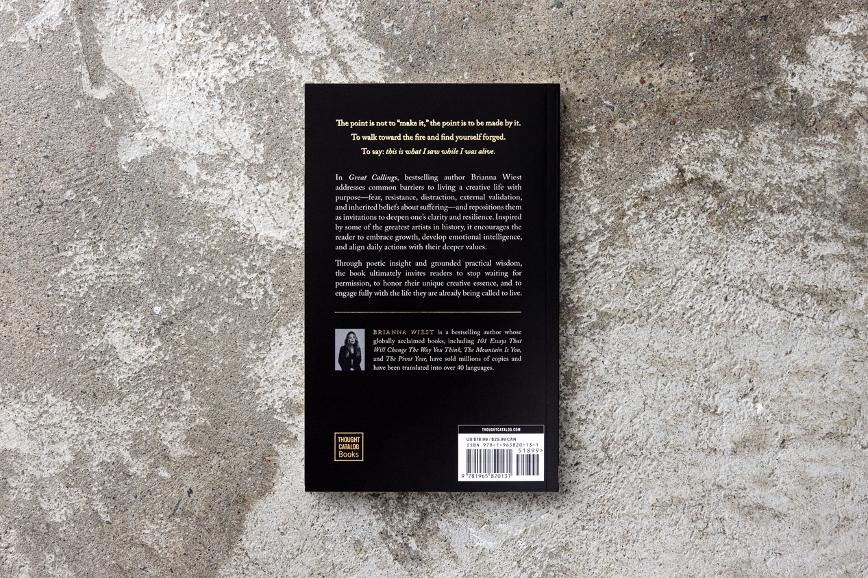 In Great Callings Brianna Wiest addresses common barriers to living a creative life with purpose – Fear, resistance, distraction, external validation, and inherited beliefs about suffering and repositions them as invitations to deepen one’s clarity and resilience. Inspired by some of the greatest artists in history. It encourages the reader to embrace growth, develop emotional intelligence, and align daily actions with their deeper values. Through poetic insight and grounded practical wisdom, this book ultimately invites readers to stop waiting for permission, to honor their unique creative essence, and to engage fully with the life they are already being called to live.
