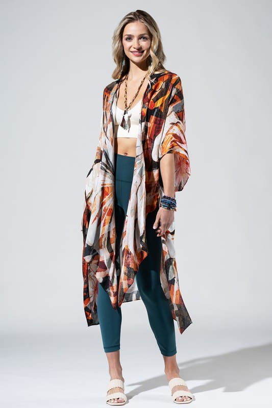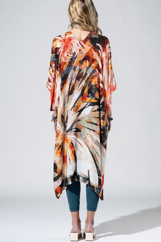 Lightweight kimono which features a lace print effect that gracefully extends to the ground, adorned with a beautifully mixed floral print on top. The blend of colors is truly amazing, making it a captivating piece. An effortless staple piece to wear over any style.